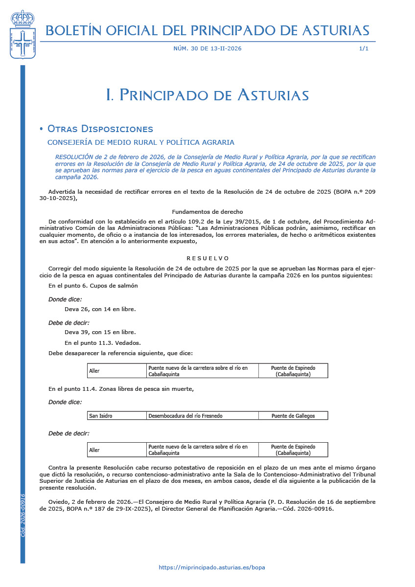 Os dejamos resolución rectificando errores en la normativa de pesca fluvial en Asturias para la temporada 2026: